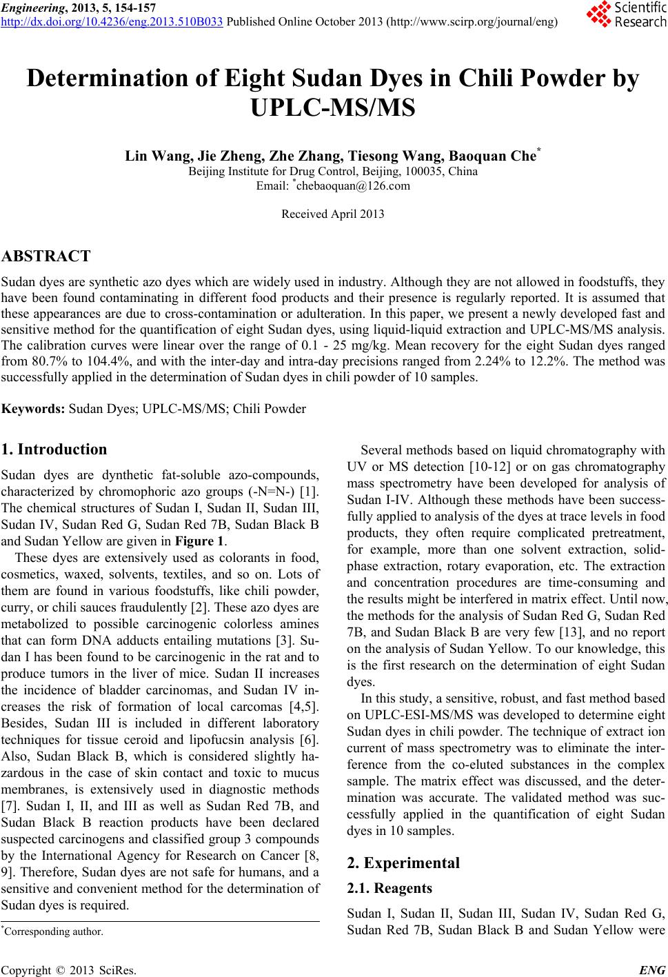 Keywords: Sudan Dyes; UPLC-MS/MS; Chili Powder