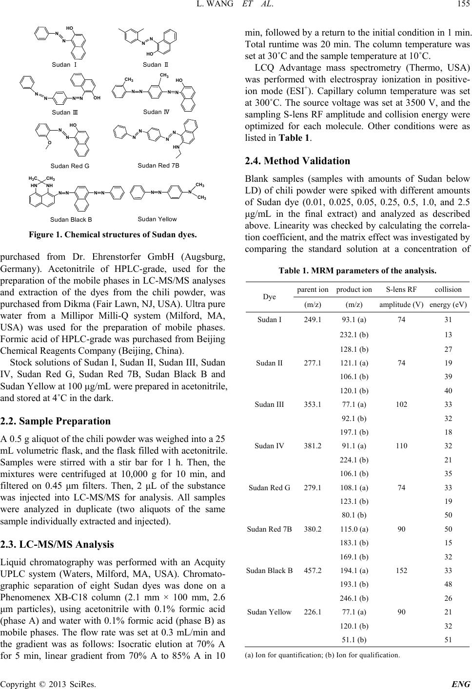 Wu, Analysis of Para Red and Sudan Dyes in Egg Yolk