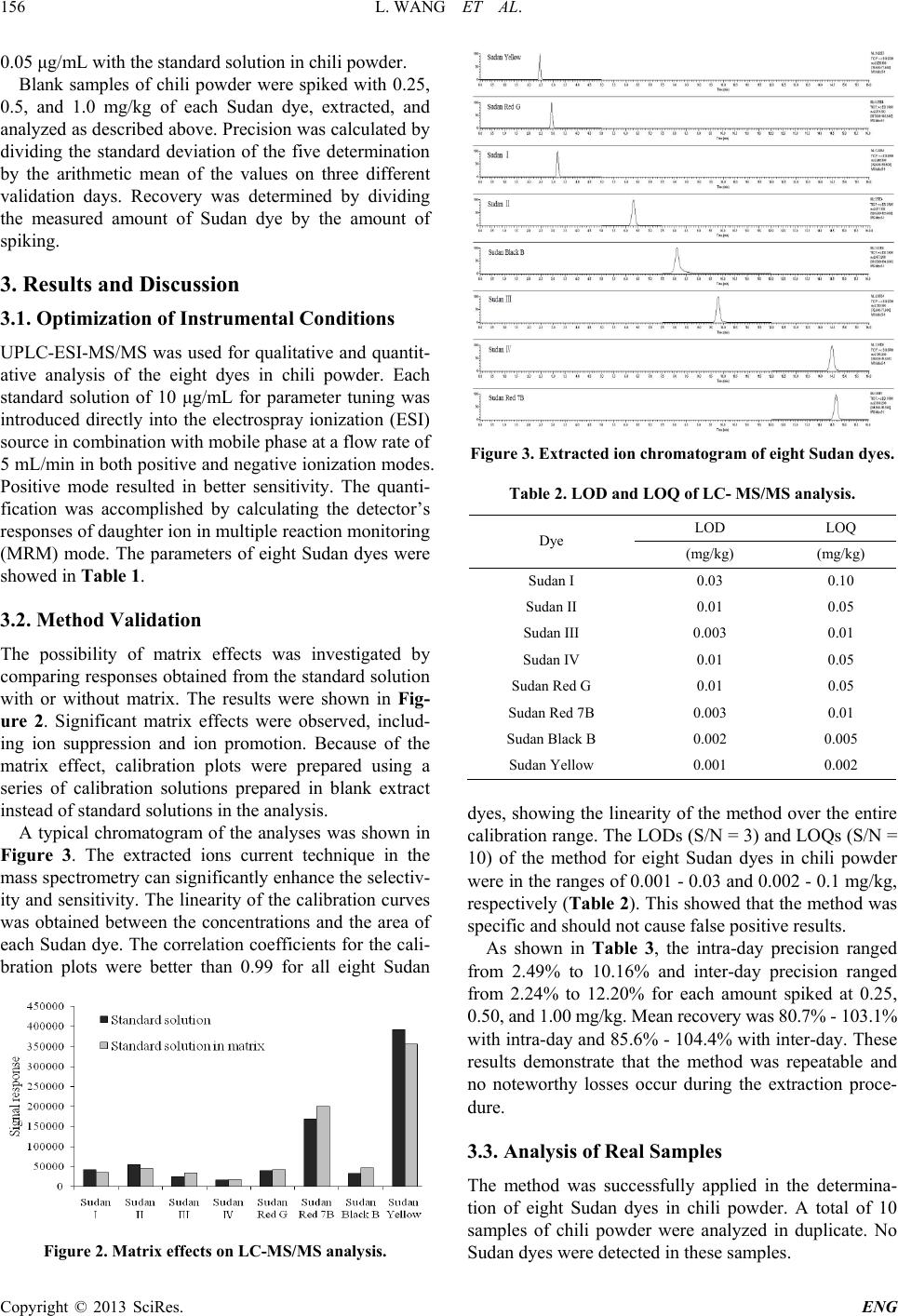 Sudan I-IV Dyes in Food Matrixes,” Journal of Chro-