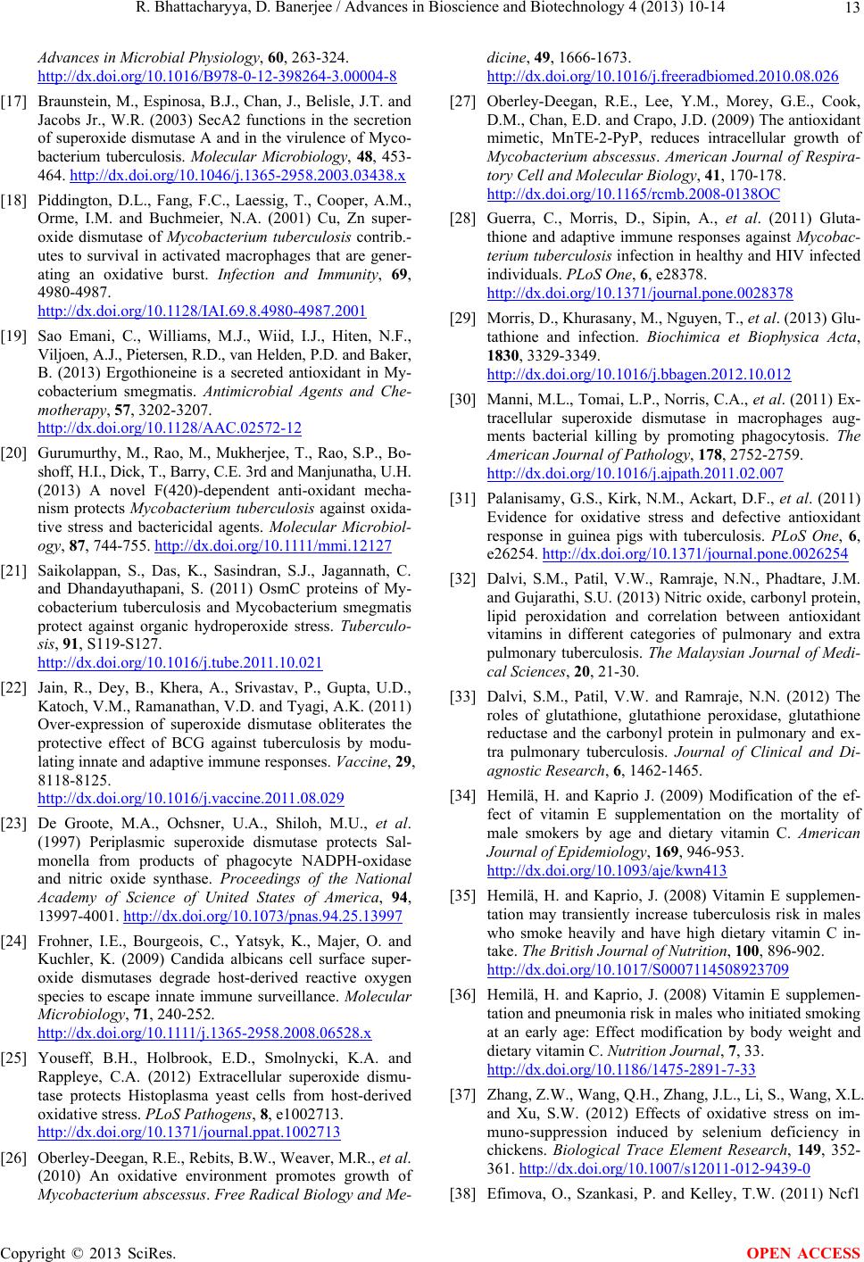 R. Bhattacharyya, D. Banerjee / Advances in Bioscience and Biotechnology 4 (2013) 10-14 13