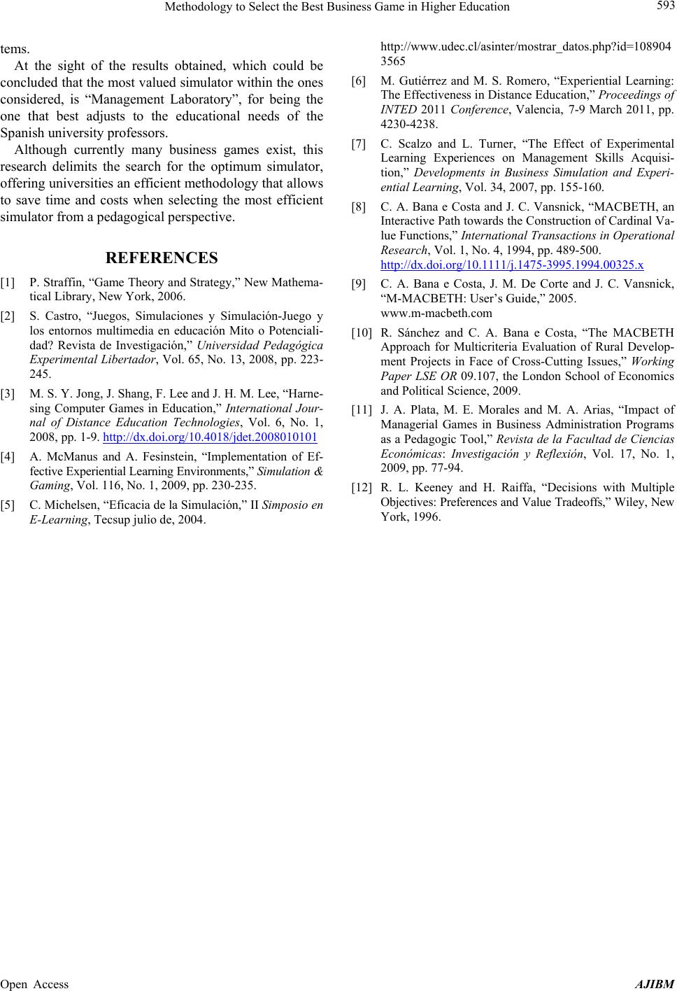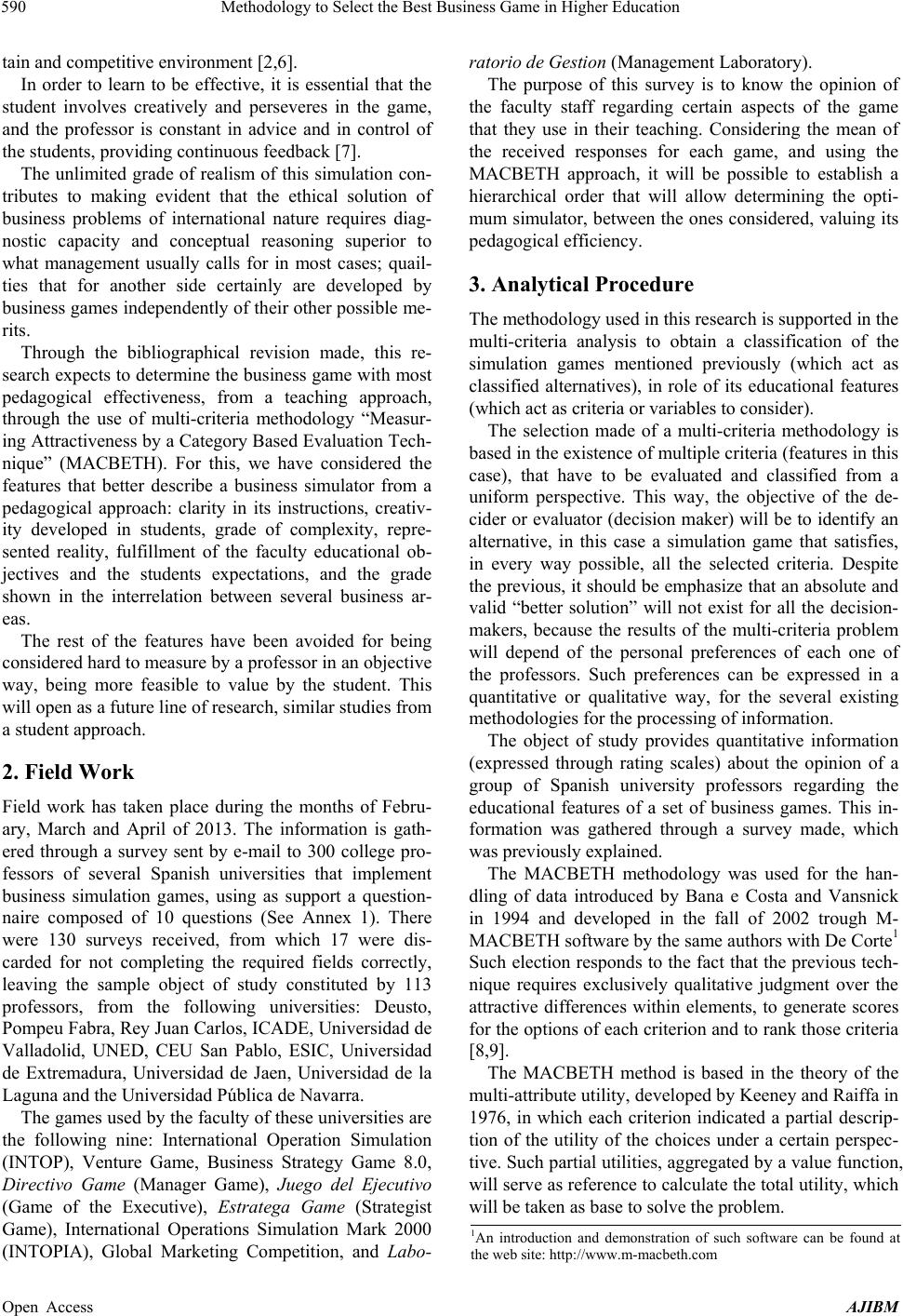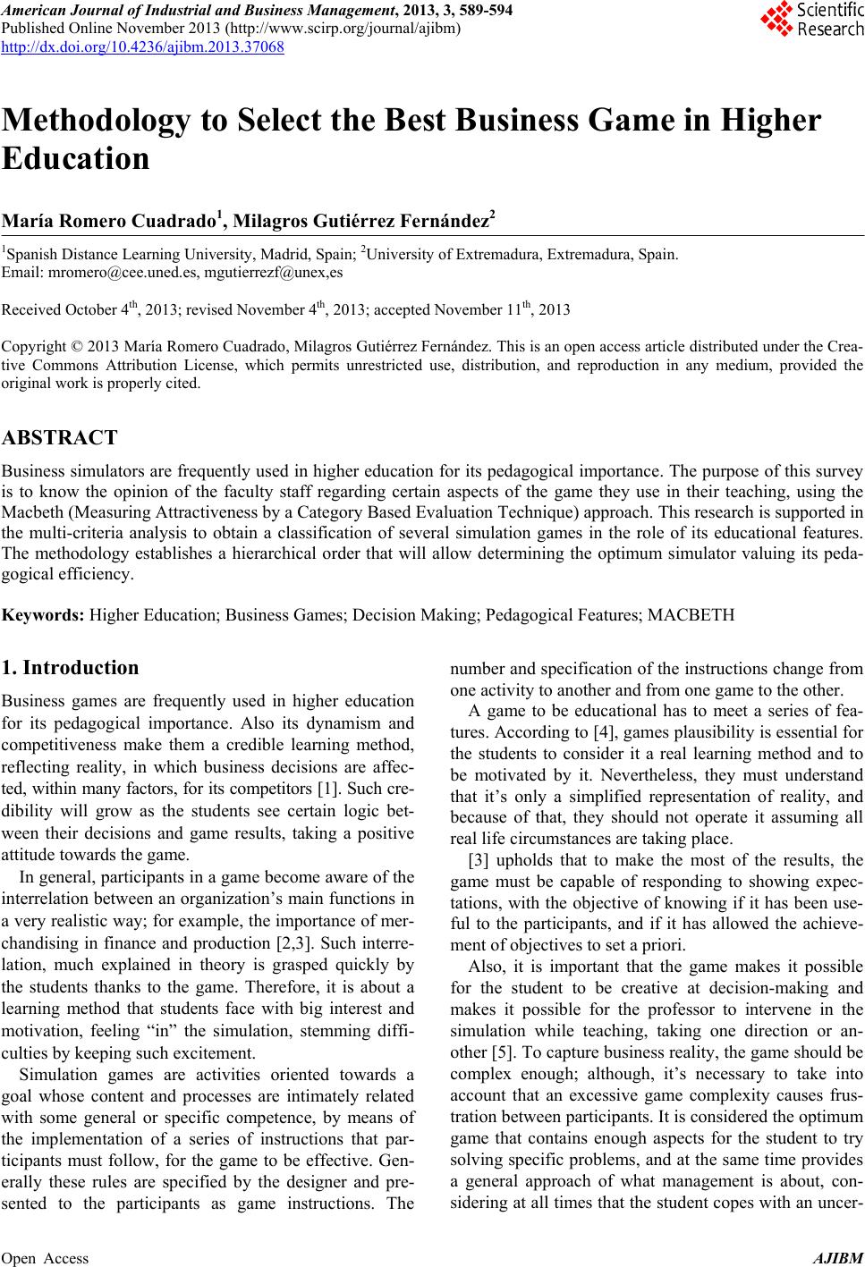 Keywords: Higher Education; Business Games; Decision Making; Pedagogical Features; MACBETH