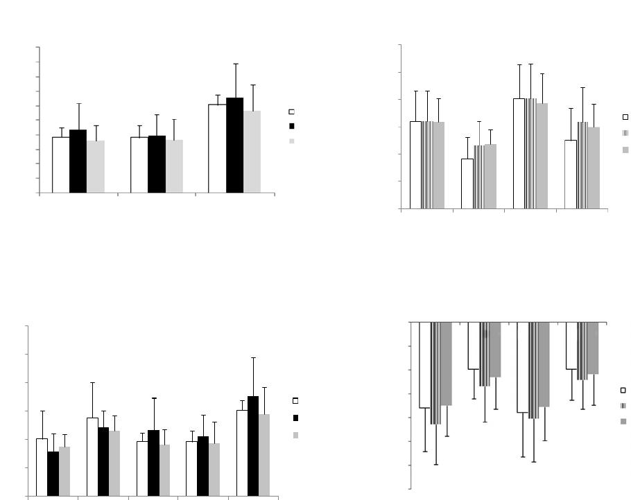 C. Kilbride et al. / Open Journal of Therapy and Rehabilitation 1 (2013) 40-51 43 2.2. Procedure All measures were taken at baseline, post intervention and at 3 month follow-up and were repeated in the same order. They were conducted by the same researchers to maintain consistency. For the tests of postural stability, the participant was asked to stand comfortably on a Kistler piezoelectric force platform (type 9281B11; Kistler, Switzerland); arms by their side, while maintaining their gaze on a (black circle) target mounted on a wall in front of them at three meters distance, and keep this position for 30 sec- onds. No instruction with respect to the foot placement was provided. Coordinates of the centre of pressure (COP) in the anteroposterior (AP) and mediolateral (ML) directions recorded during the last 20 seconds of quiet standing were used to calculate eight measures of pos- tural steadiness (total, AP, and ML excursions of the COP; total, AP, and ML velocity of the COP; AP and ML range of COP excursion) according to Prieto et al. [37]. A maximum of three successful trials were col- lected based on the participant’s ability to maintain their balance or follow the instructions for the duration of the trial and the average of the outcome measures were used in the analysis. The participant sat down between trials for thirty seconds to avoid fatigue. It was decided to test the strength of the knee flexor and extensor muscle groups as an indicator of strength in the lower limb since a significant correlation amongst strength measured from different muscle groups of the lower limb after stroke has been reported [38,39]. A System 3 Biodex Isokinetic Dynamometry system (Bio- dex Medical Systems, New York, USA) was used for the assessment of strength of both the non-paretic (NP) and paretic (P) sides. The non-paretic limb was tested first. The participants were asked to produce maximum iso- metric knee extension or flexion torques while in a seated position (back rest angle at 85 degrees) at two different joint angles equal to 90% and 80% of the available range of motion between 90 degree of knee flexion and full extension. Using this procedure, torques were measured at angles closer to full knee extension. The order of angle at which strength was tested was al- ternated between the participants. Verbal encouragement was provided during the trials. At each joint angle tested, the participant was asked to produce a maximum extension torque for five seconds followed by a maximum flexion torque for five seconds. There was a ten second rest interval between each exten- sion-flexion torque pair. Three pairs of extension-flexion torques were produced at each joint angle. There was 120 seconds rest interval between the sets of exten- sion-flexion torque production at the two angles. Maxi- mum torques recorded during the last two pairs of torque production were normalised to the body weight [40,41] and their average was used in the final analysis. Some participants were unable to produce torques above the value used by the system for gravity correction. For these individuals/sessions the gravity correction value deter- mined by the system at the time of testing was used as the maximum torque to prevent missing values for the analysis. Accordingly, maximum torque could have been overestimated in such circumstances. Dynamometry and force platform data were sampled at 100 Hz. The Berg Balance [42] was carried out in accordance with published guidelines. The 10 m walk was repeated three times with a one metre lead in and out distance. The average of the three trials was calculated and the participant was given the option to rest between trials to minimise the impact of fatigue. The SIPSO was com- pleted independently by the participants. 2.3. Data Analysis Clinical data were analysed in SPSS (SPSS Inc.; ver. 18.02) using a variety of tests as appropriate including t-test, ANOVA, related samples Friedman’s Two-way analysis of variance or a one tail sign test. For the bio- mechanical data, conventional paired t-test, one-way ANOVA, and MANOVA with repeated measures (side, joint angle, and testing session) was used to test the ef- fect of training on balance and strength data between the NP and P sides at baseline and post-training, or across the three (baseline and post-training and follow up) testing sessions at the two joint angles. The level of sig- nificance for all tests was selected at 0.05 (α = 0.05). An intention to treat analysis was conducted. Attendance rate was good averaging 74% - 90% across the four groups. 3. RESULTS Different number of participants took part in different tests. Figure 1 illustrates a flow chart of the study where reasons for drop outs are also included. 3.1. Measures of Impairment Overall, postural stability performance of the partici- pants did not show any statistically significant differ- ences across the three sessions, or between the baseline and post-training sessions (all p values > 0.05). Results for the postural steadiness are illustrated in Figures 2 and 3. For the extension torque at the baseline and post- training sessions, the effects of side and joint angle were significant. As expected, the non-paretic (NP) legs were significantly stronger than the paretic (P) legs (F[1,10] = 19.98; p = 0.001), and the torques produced at the rela- tively more extended joint angle were smaller (F[1,10] = 44.61; p = 0.0001). For the flexion torque, only the effect of side was significant where NP legs produced higher flexion torque values compared to the P legs (F[1,10] = Copyright © 2013 SciRes. OPEN ACCESS