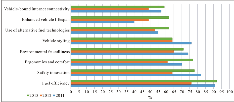 Figure 5. Automotive consumers’ top priority areas for years 2011-2013; data source [16] .