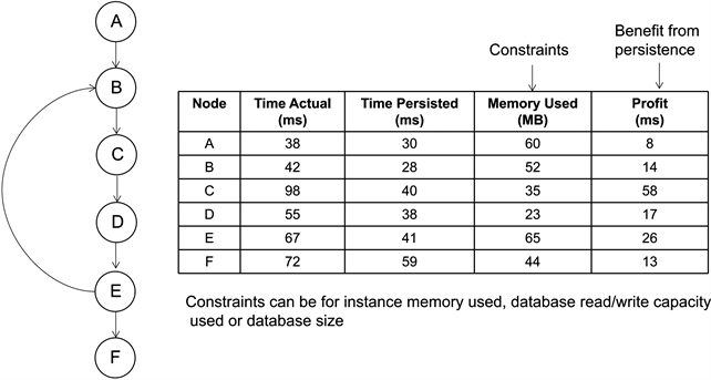 where, A = Total time for execution of all nodes if no persistence is used; B = Total time for execution of nodes in the persisted set; C = Total time for execution of nodes in the non-persisted set;
