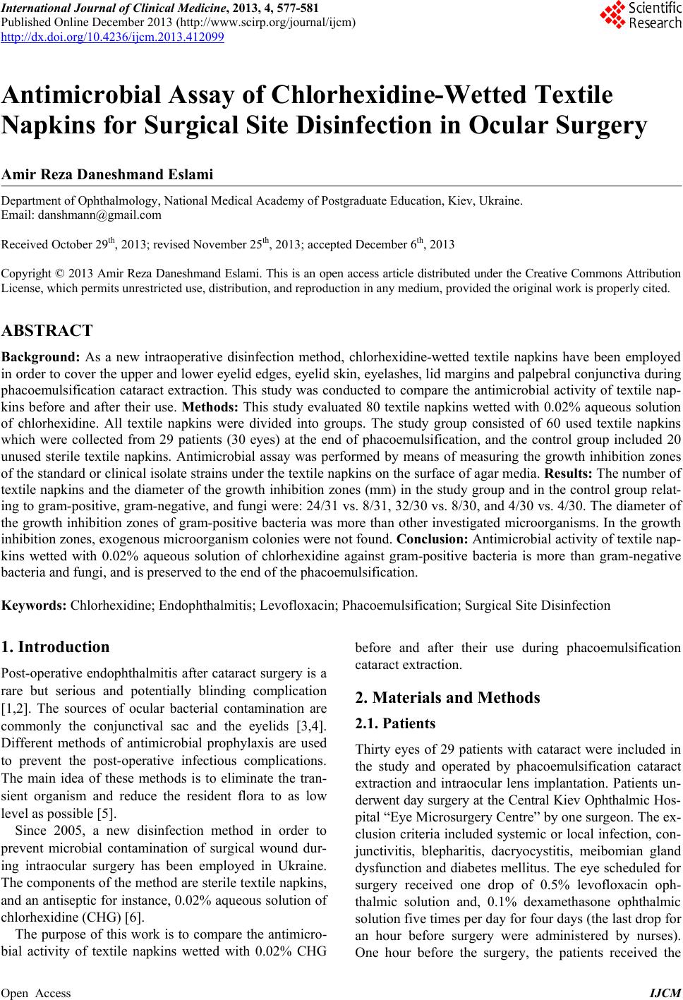[10] L. D. Perry and C. Skaggs, “Preoperative Topical Anti-