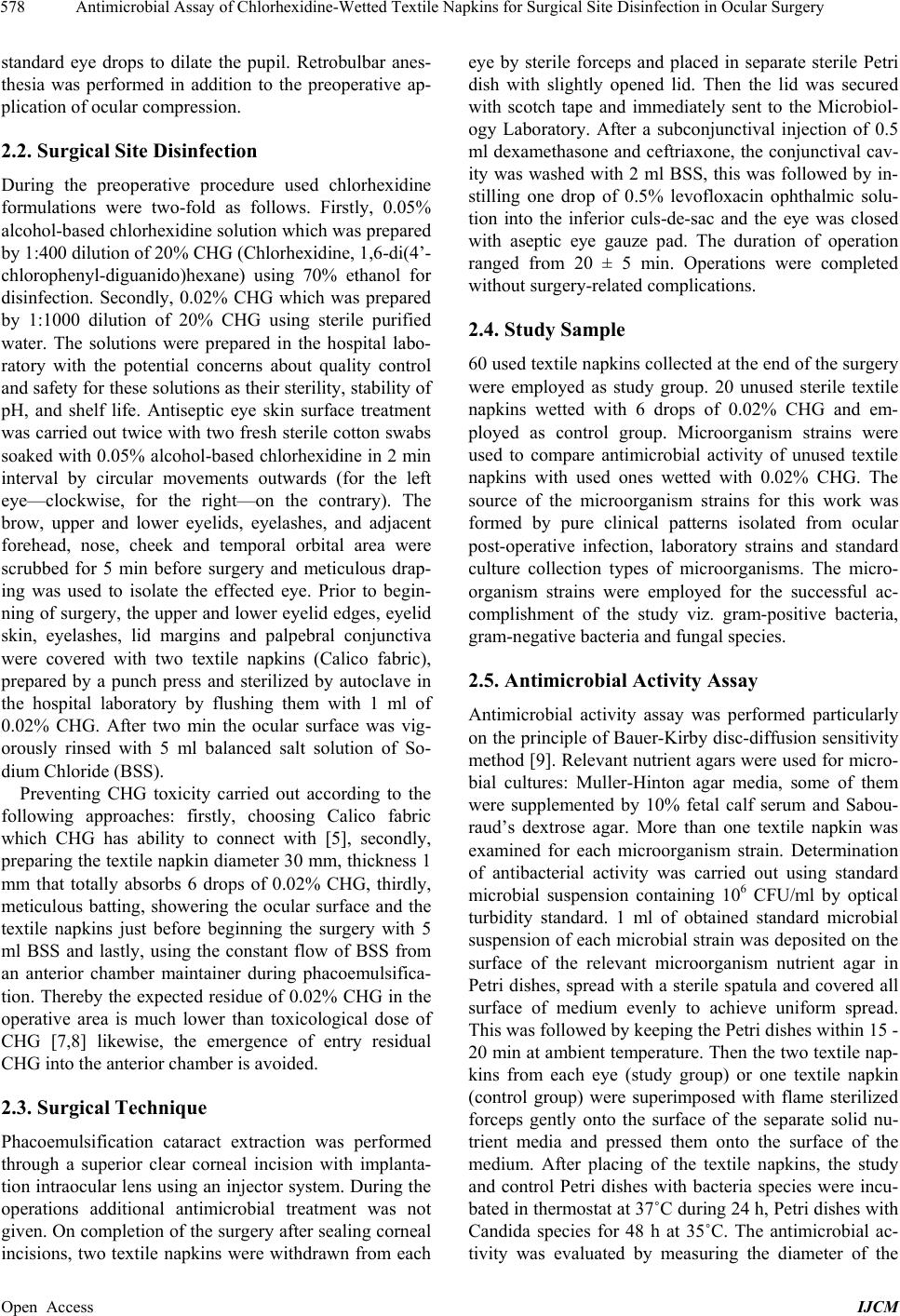 Antimicrobial Assay of Chlorhexidine-Wetted Textile Napkins for Surgical Site Disinfection in Ocular Surgery
