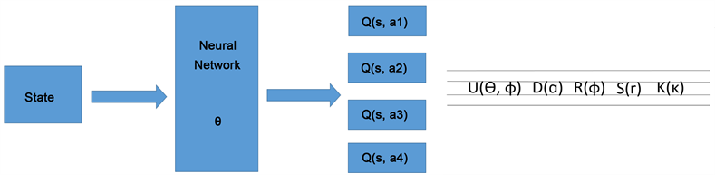 For a problem with a small number of states and actions, tables could be used to represent the Q function efficiently, but for large sizes of state and action spaces they do not scale well. In this case, neural networks can be employed to approximate the Q function with Q ( s, a; θ ) parameterized by θ (Figure 2).