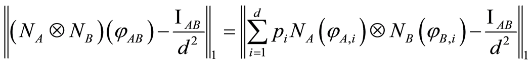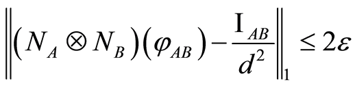 This implies that Eve’s attack is impossible in principle. Then how can we treat of entangled input states? Although direct proof is impossible, there is an evidence for the statement on Equation (5). The Theorem III.3 in [4] states that, for a positive operator-valued measure (POVM)