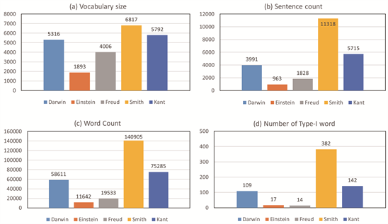 Figure A1 presents some basic statistics of the five books, evaluated after the pre-processing procedures.