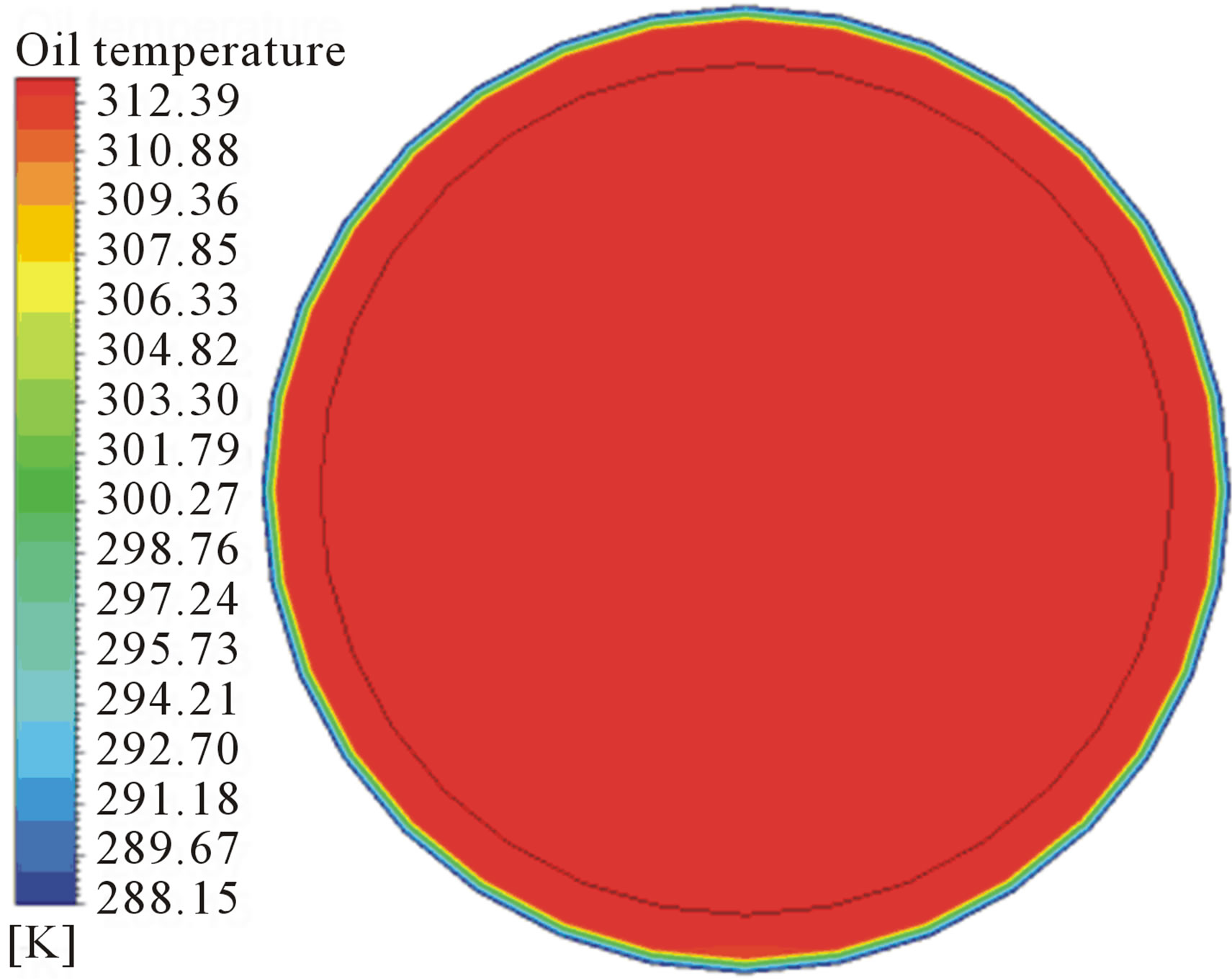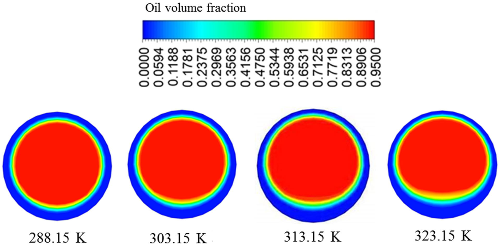 Figure 6 shows the volumetric fraction field of the oil phase at a distance X = 1 m, for different temperatures of