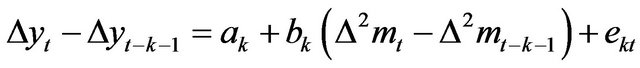 which means that permanent change in the growth rate of money affects the growth rate of output in the same way the level of money affects the level of output. Therefore, this implies that “growth-rate to growth-rate” propositions are not LMSN propositions. To test LMSN in this case, first of all LMN should be held. If LMN holds, then LMSN can be tested by deriving Equation (8) to estimate,