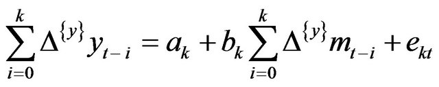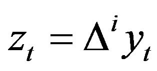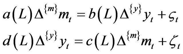 where and are the orders of integration of the money supply and the real GDP respectively. The vector is independently identically distributed with zero mean and the covariance which is composed of and.
