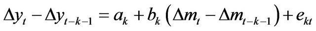 These linear Equations (5)-(8) can be computed by applying Newey and West (1987) [10] approach to obtain consistent estimate of. These authors purpose a consistent covariance matrix estimator by applying GMM methodology when error terms are heteroskedastic and autocorrelated.