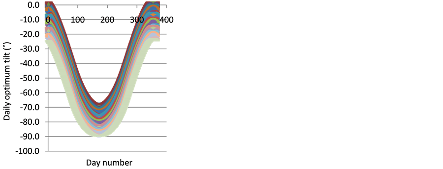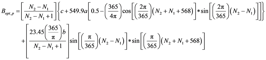 It was found that daily optimum tilt angle, Bopt,d, can be calculated effectively using the following equation: