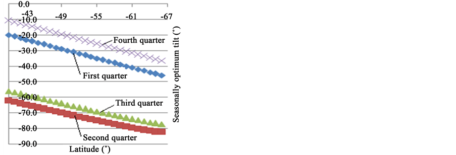 Figure 3. Seasonally optimum tilt angle for latitudes [−40˚, −66˚].
