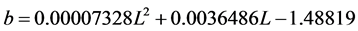 where “a”, “b” and “c” are functions of latitude L. These functions are of the following form: