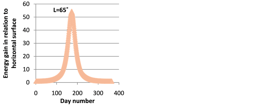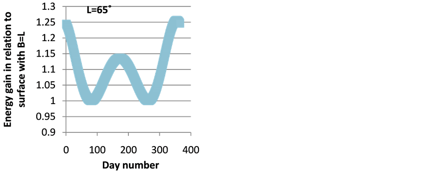Figure 7. Daily solar energy gain in relation to horizontal surface for latitude −65˚.