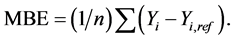 a) The mean bias error (MBE) given by: