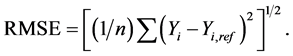 b) The root mean square error (RMSE) given by: