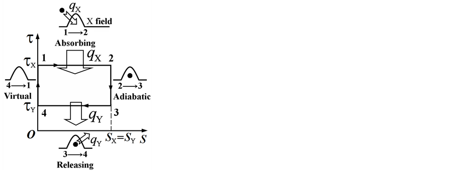 Figure 1. Temperature-entropy diagram for particle Carnot cycle. In working process of the imagined PCE, the distribution of useful energy is completely determined by Carnot’s theorem.
