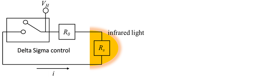 Equation (2). The input voltage of the circuit is denoted as VH. The amount of the current is denoted as i. The resistance of the outside circuit is denoted as R0. The resistance of the infrared light’s filament is denoted as Rs. Such structure is shown in Figure 4.