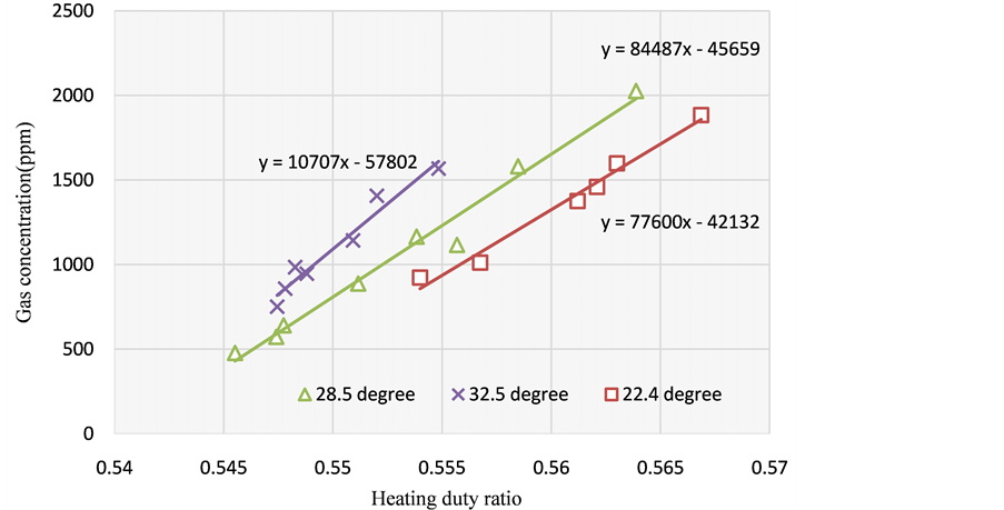 Figure 6. CO2 concentration vs. heating ratio (m/N).