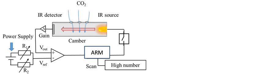 Normally, we use the NDIR technique in a light source [2] which is heated periodically without controlling temperature that tends to an unstable signal. In order to solve this problem, we combine delta-sigma architecture [3] [4] with NDIR-based system and using a feedback loop to surmount the problem of offset which is infrared radiation intensity. Furthermore, we modulate gain and reference voltage of comparator for changing sensitivity of the measuring instrument. Therefore, we not only solve drift problem but also have high resolution measuring instrument.