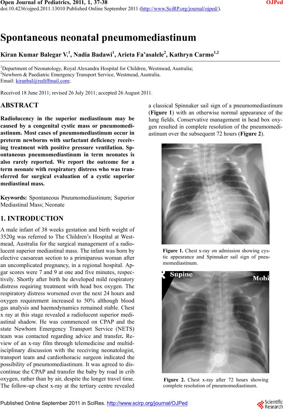 K. K. Balegar V. et al. / Open Journal of Pediatrics, 2011, 1, 37-38