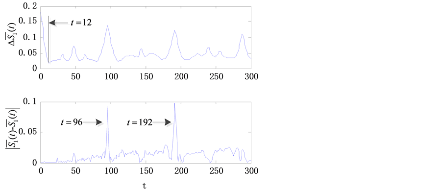 The phase space reconstruction parameters of voltage deviation time series are calculated by the improved C-C method [12], and the results are shown in Figure 3. The improved C-C method is adopted to determine time delay τ and embedding dimension m. The first local minimum of