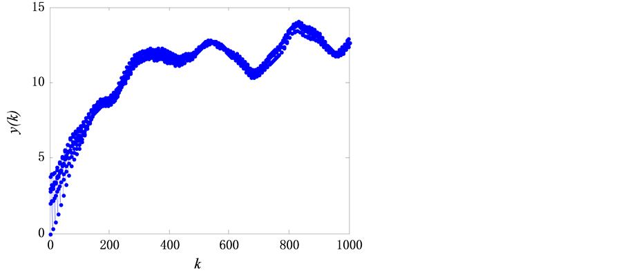 In Figure 4, k is the evolution step of discrete time, y(k) is the distance logarithmic mean. Figure 4 shows that the long curve before k = 200 is nearly linear, whose slope is the largest Lyapunov index of voltage deviation time series. Furthermore, the slope of the line is 0.045 > 0, which verifies the selected voltage deviation time series is chaotic time series with chaos characteristic.