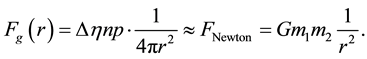 The number of oscillator quanta n in body 1 respectively p in body 2 is proportional to the gravitational mass m1 of body 1 and the gravitational mass m2 of body 2. We now recognize the similarity with Newton’s metric law of gravity, where G is Newton’s gravitational constant [13] .
