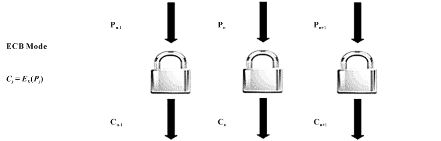 ECB: This form or block cipher, where the data blocks are encrypted and generated directly to form its corresponding ciphered blocks as shown in Figure 4.