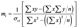 Table 7. Spreadsheet for the calculation of σci and mi from triaxial test data.