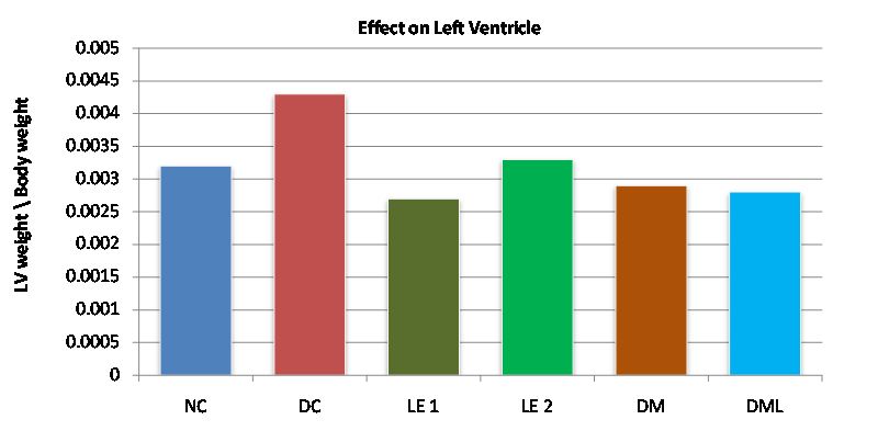 groups showed significant result in decreasing LVH in alloxan induced diabetic groups after four weeks treatment. The Table 3 and Figure 7 represented the