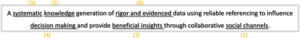 Finally, being able to code significant themes of practical aspects of research, revealed one definition of research as: A systematic knowledge generation of rigour and evidenced data using reliable referencing, aimed at influencing the decision making and providing beneficial insights through collaborative social channels. Figure 4 present the constructed definition of research.