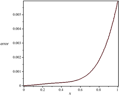 Figure 1. Illustrates the absolute error between the numerical solution and the exact solution when n = 5.