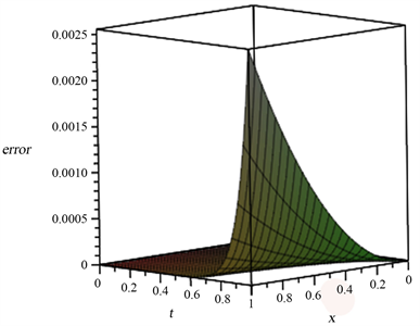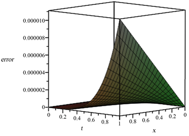 Figure 4. Illustrates the absolute error between the numerical solution and the exact solution when n = 5.