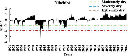 Figure 5. Evolution of the hydrological drought at the hydrometric station of Nibéhibé.