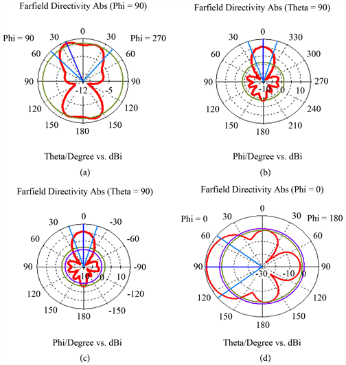The ratio of the radiation intensity, in a given direction, to the radiation intensity that would be obtained if the power accepted by the antenna radiated isotopically is defined as gain (IEEE 1993, p. 547). The directivity of the proposed model is shown in Figure 9.