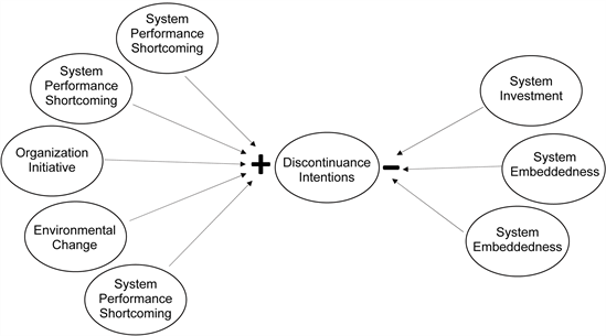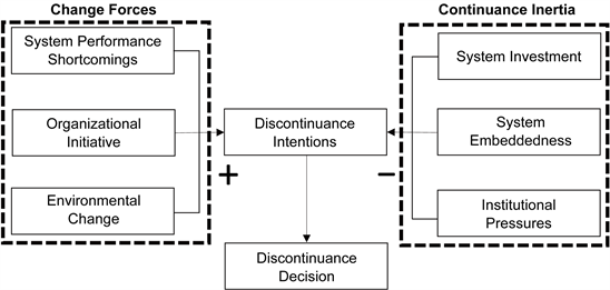 Analogous to our efforts to adequately account for technological, organizational, and environmental drivers of change, we also sought to identify technological, organizational, and environmental sources of continuance inertia. This process led to the identification of the level of financial and other investments in an existing system, the degree of embeddedness of this system within organizational activities, and institutional pressures from the organization’s environment as three potentially essential contributors to continuance inertia.
