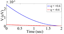 , against time for two values of q. It is clear that decay is fast when
