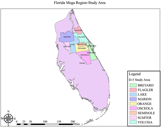 Figure 2. Florida mega region and D-5 study area.