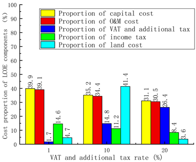 Figure 5. LCOE component at different VAT and additional tax rate.