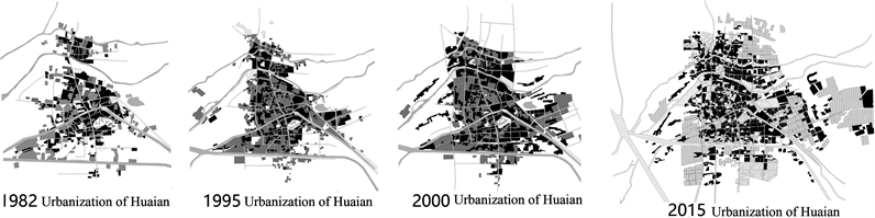 The city of Huaian is located in the north-central part of Jiangsu province [13]. It has a population of 5,230,000, an area of 100.72 km2 (urban area) in 2020. It is characterized by dispersed rivers and lakes. The Salt River, ancient Yellow River, Li Canal and the Grand Canal flow through the urban area from west to east, forming the distinctive urban pattern. In the early time, the city was developed slowly, and residents were mainly concentrated along the Li Canal. The construction of highways from Beijing to Shanghai promoted urban expansion rapidly in 2000, and the regional plan made by the local government integrated the surrounding four counties into the city in 2001, that organized the city area with housing, industry, tourism.