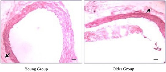 The balance, stability, and compliance of the vascular wall are dependent on the contribution of two proteins-collagen and elastin, and aging is associated with profound changes in the properties of elastin and the stimulation of collagen synthesis [6]. An increase in collagen in arterial walls results in the changes to the vessel wall structure, which can then lead to increased arterial stiffness, a major contributor to the development of atherosclerosis, and consequently, cardiovascular disease [15] [16] [17]. The aging process is associated with quantitative and qualitative alterations of collagen and elastin fiber [18] [19]. One possible structural modification is collagen reorientation [20].