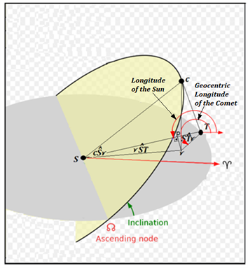 , which is the angle that when added to the longitude of the Sun, gives the geocentric longitude of the Comet (Figure 16).