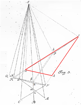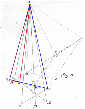 Figure 9. Triangles involved in the calculations considered in §. XXVI. Adapted from Figure 3 (Euler, 1743).