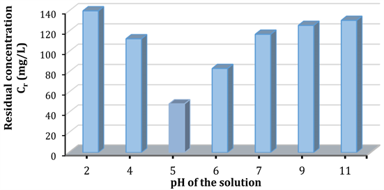 Figure 3. Residual concentration of lead(II) as a function of the initial pH of the solution for an initial concentration of 300 mg/L.