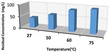 · To study the effect of temperature on the adsorption of lead(II) ions, the experiments were carried out by adding the mass of 0.5 g of carbon to 50 mL of the metallic solution of lead(II) at different concentrations. Initials, at temperatures varying between 27˚C and 75˚C;