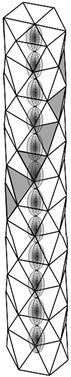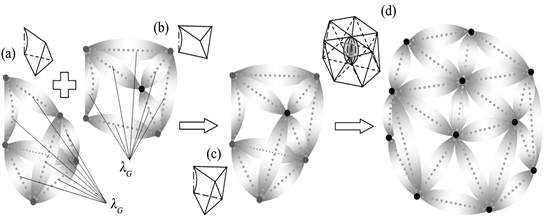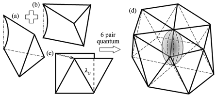 In [2] it is shown that the prismatic shape of the quanta of space also does not meet the criteria of minimalism. Therefore, in [2] it is proposed to replace the square at the end of the prism with a regular triangle, which reduces the quantum of the Universe space to a complex figure, which is shown in Figure 2.